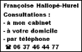 ACCUEILLIR, ACCOMPAGNER, SOUTENIR Bonjour et bienvenue. Pour information, je ne prends plus de nouvelles situations mais je continue uniquement les suivis des personnes que j'ai déjà rencontrées. 06 37 46 44 77 Je vous accueille Je vous accompagne Je vous soutiens dans votre cheminement personnel soit en vous recevant à mon Cabinet ou en me déplaçant à votre domicile ou par téléconsultation. Cet espace vous permettra de faire connaissance avec ma pratique. |